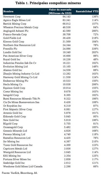 Las principales compañías del sector (tabla 1), ilustran el atractivo del mercado en la coyuntura actual, reflejado en la rentabilidad acumulada en el año.