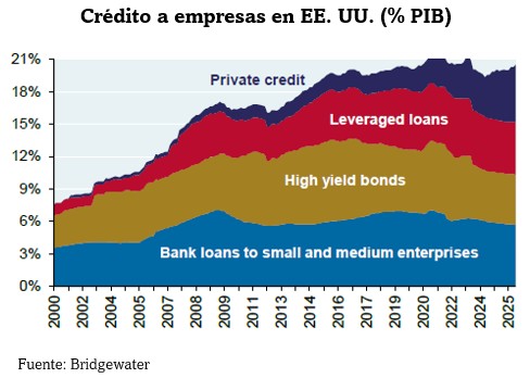 Como hemos argumentado con anterioridad, el desarrollo del crédito privado constituye una evolución natural y, en muchos aspectos, positiva del sistema financiero. Amplía fuentes de financiación, diversifica riesgos y facilita la inversión en sectores estratégicos, pero su análisis exige una comprensión completa de las interconexiones.